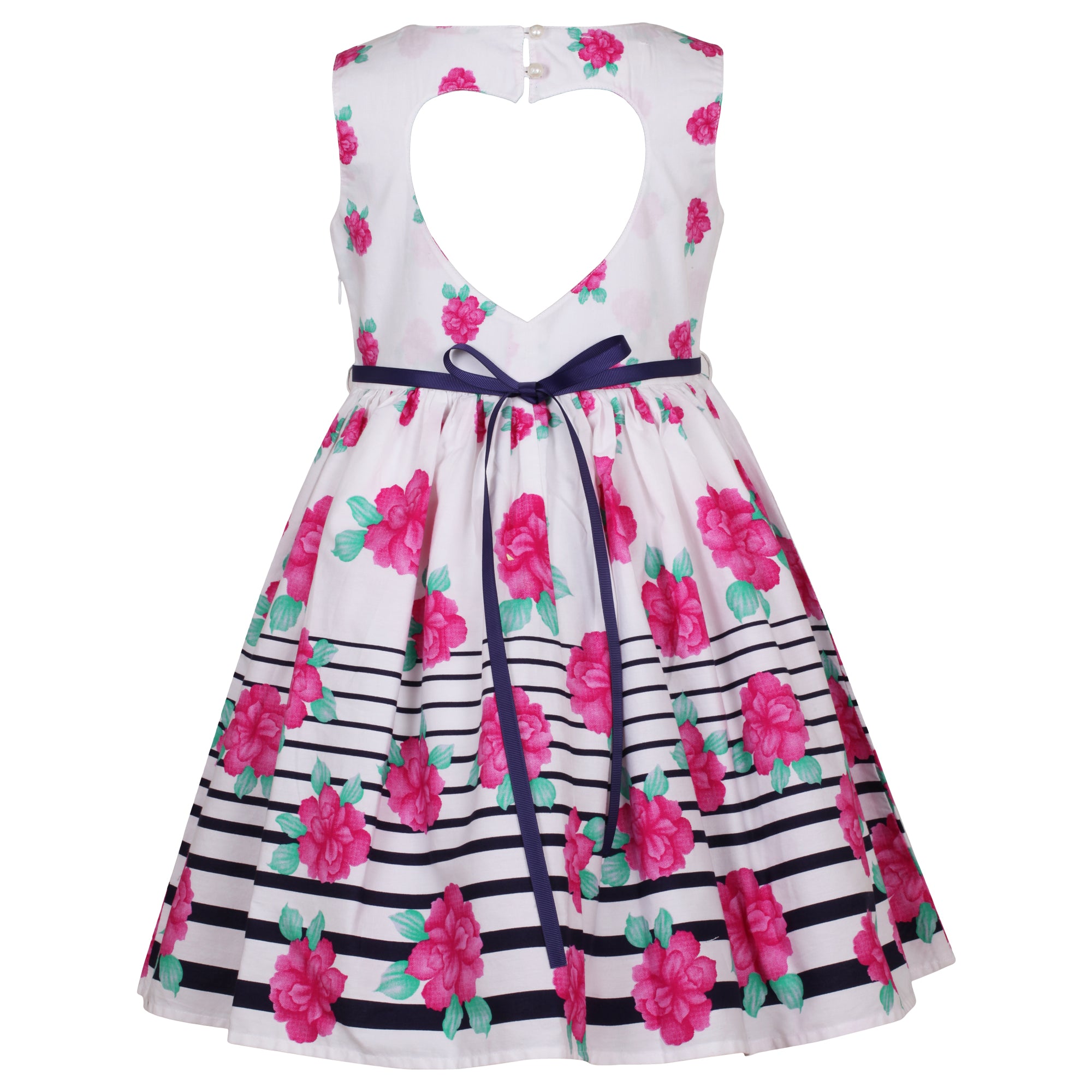 Summery Floral and Stripe Cotton Dress with Cute Heart Back Detail