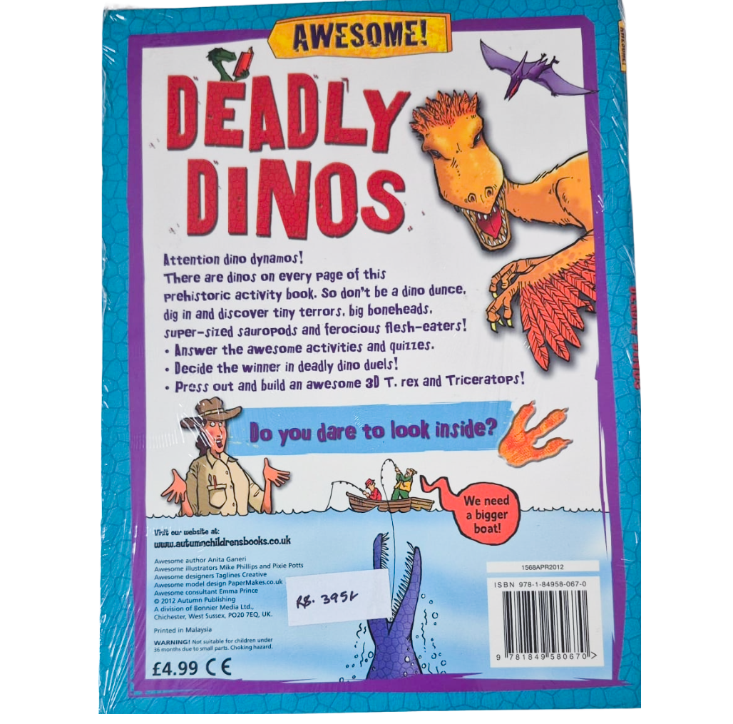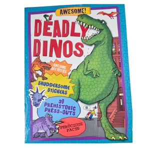 A fun and exciting dinosaur activity book filled with stickers, 3D press-outs, quizzes, and amazing dino facts. Perfect for kids who love dinosaurs!