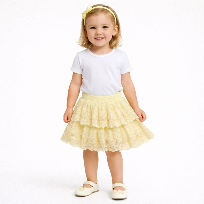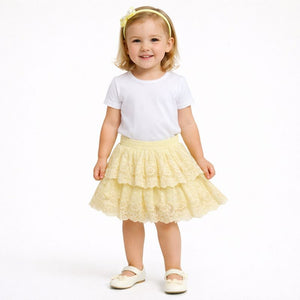 Breezy, beautiful, and effortlessly charming, these pastel tiered skirts in Turquoise green, lemon and peachy pink is a dreamy addition to your little ones wardrobe.