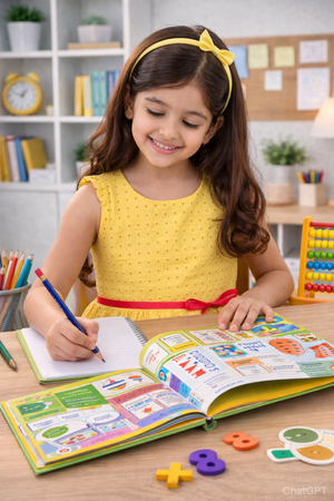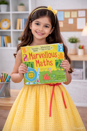 A fun and interactive maths learning book for kids with colourful illustrations, flaps, and tabs. It helps children understand numbers, shapes, measurements, and basic maths concepts in an easy and exciting way.