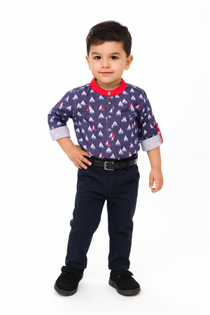 The Navy Sailboat Printed Shirt is a fun and playful all-over sailboat print . Made from soft and breathable cotton fabric, it keeps kids cool and comfortable all day long.