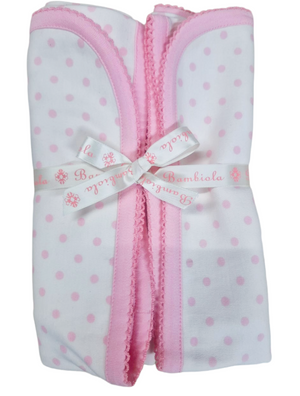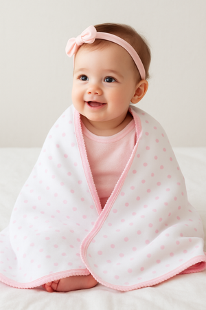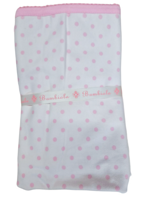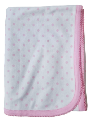 Wrap your little one in our soft snuggly Pink Polka Blanket. Crafted from gentle, breathable cotton, this adorable blanket features a sweet pink polka-dot print and a beautifully finished Pink Picoting edge for a delicate touch.