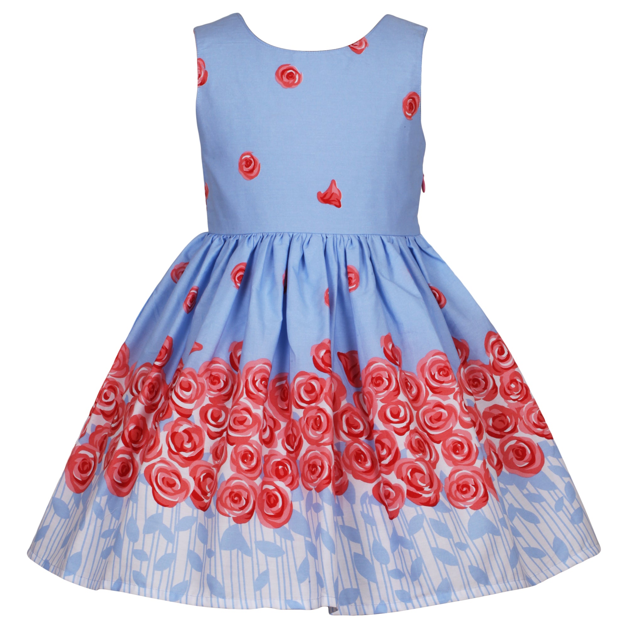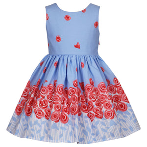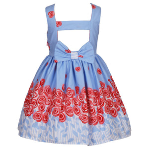 This beautiful rose border print dress features a sleeveless bodice with a cute back, a cute bow at front, a concealed zip on a fit and flare style.