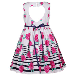 White Floral Cotton Dress with Blue Belt & Heart Back Detail is a perfect Love the Back style!