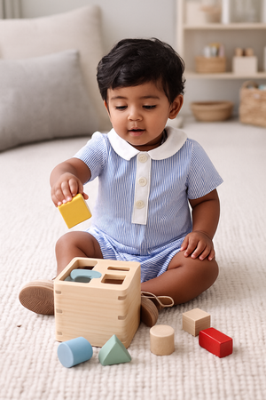 White Stripe & Blue Unisex Romper