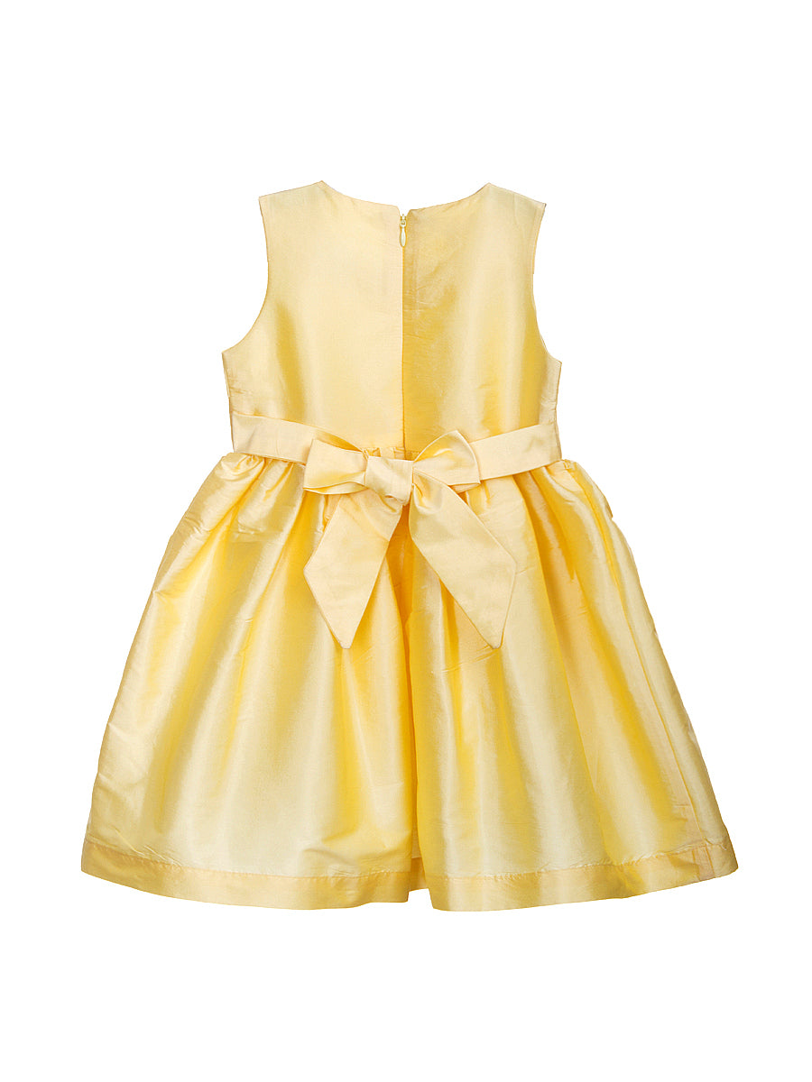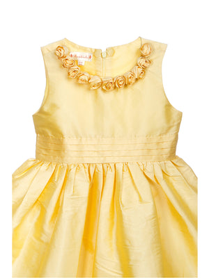 Make your little one shine in this charming yellow, rosette party dress, crafted from luxurious silk fabric. The vibrant yellow hue and delicate hand made rosette detailing creates a beautiful, playful yet elegant look. This dress is a perfect one for your little sunshine to wear for birthdays, weddings and other special occasions.