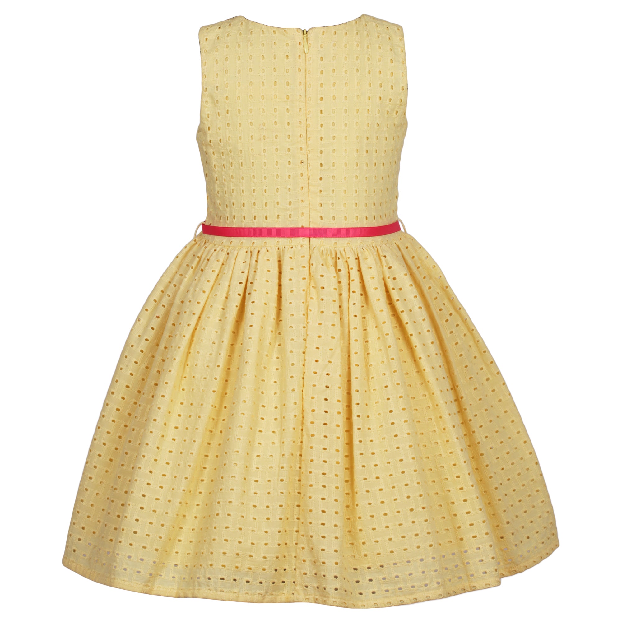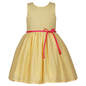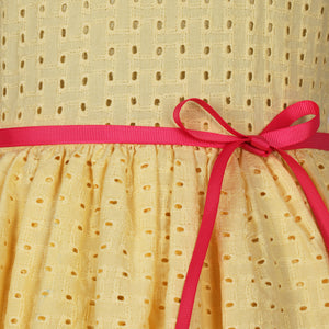 Yellow Schiffly Dress with Pink Belt